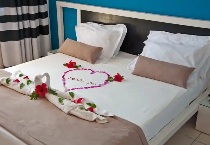L’adresse vous gâte avec 370 chambres, dont des doubles, triples, quadruples et familiales. Chaque espace offre un balcon avec vue sur la mer, la piscine ou les jardins de palmiers. Vous y trouverez une télé satellite, une clim’ réglable, un chauffage, une salle de bain privative avec douche et un téléphone. Tout est conçu pour un confort douillet